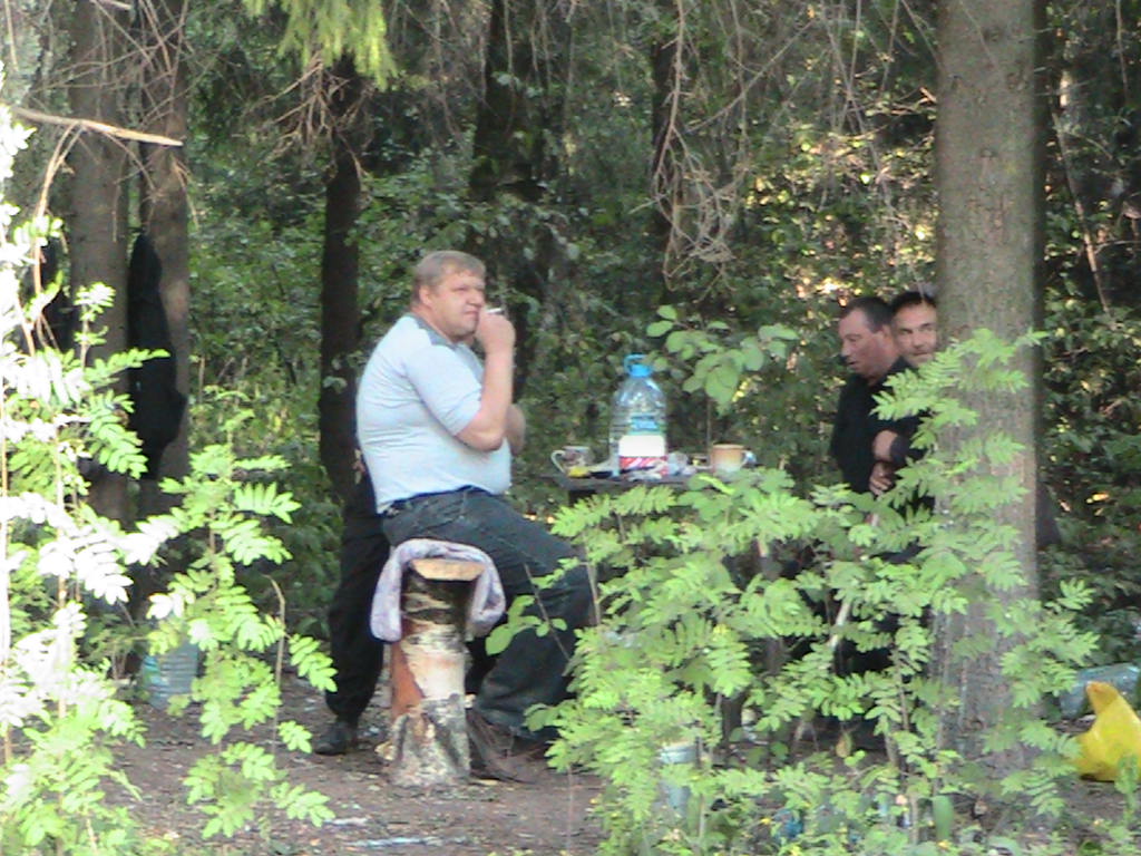 Приезжали помощники депутатов из Госдумы, ответственные представители Гринпис Ярошенко и Крейндлин, много корреспондентов из телевизионных каналов, даже первый канал приехал, чем нас очень удивил, поскольку позавчера сказали, что это не их тема. А как собралось много народа, стали баррикады строить, так сразу прикатили, боятся! К 14-00 с разрешительными документами подрядчик так и не приехал, скорее всего их просто нет. Ему звонили, он ответил, что подождет когда народ успокоится и рассосется и продолжит рубить дальше.