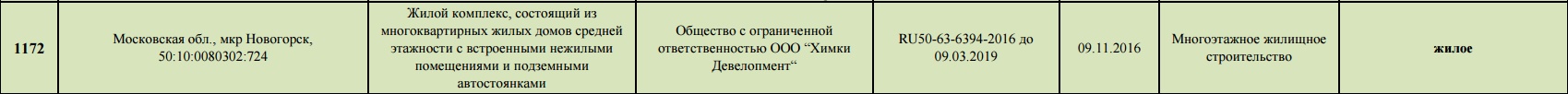 Документ датирован 9 ноября, застройщиком является компания "Химки Девелопмент". Планируется возведение "многоквартирных домов средней этажности".