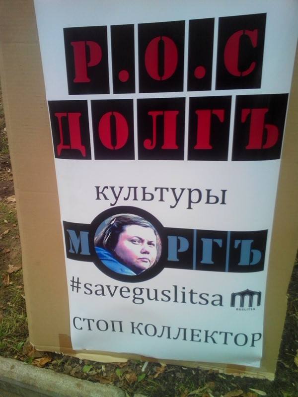 Возле офиса коллекторского агентства "РОСдолг" прошла организованная художниками серия одиночных пикетов в защиту творческой усадьбы "Гуслица". Об этом сообщил "Экообороне" защитник Химкинского леса, житель Старых Химок Александр Глибин, который участвовал в акции.