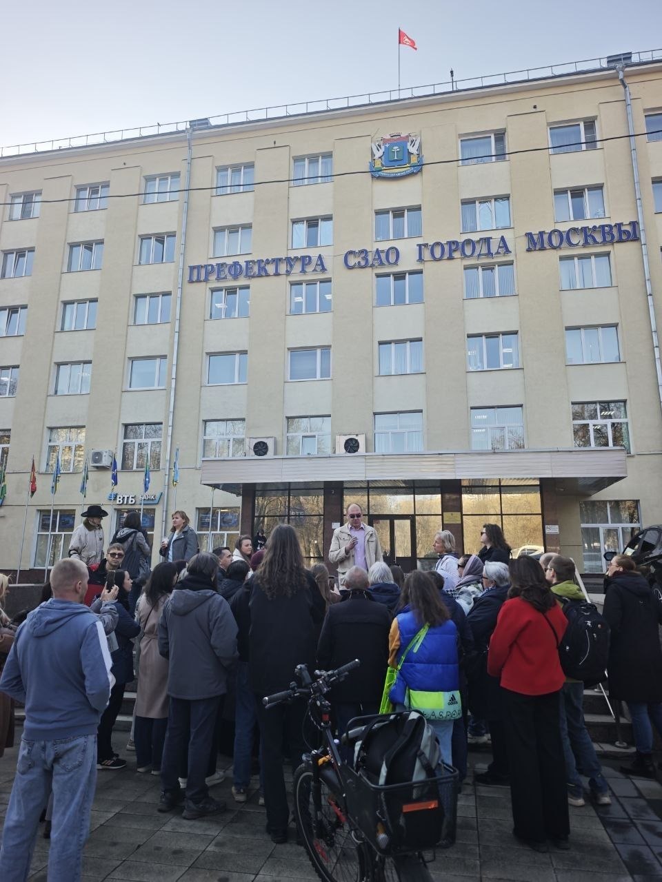 "Присутствовали два заместителя префекта, представитель ФК "Динамо", глава управы Южное Тушино и трое представителей жителей. Несколько десятков человек приехали к префектуре поддержать активистов. По словам главы управы Дмитрия Захарова, реальный план застройки существует и может быть показан уже на этой неделе. Со стороны жителей предложена корректировка проекта с частичным сохранением и восстановлением парковой зоны. Представитель "Динамо" пообещал дать обратную связь в конце недели".