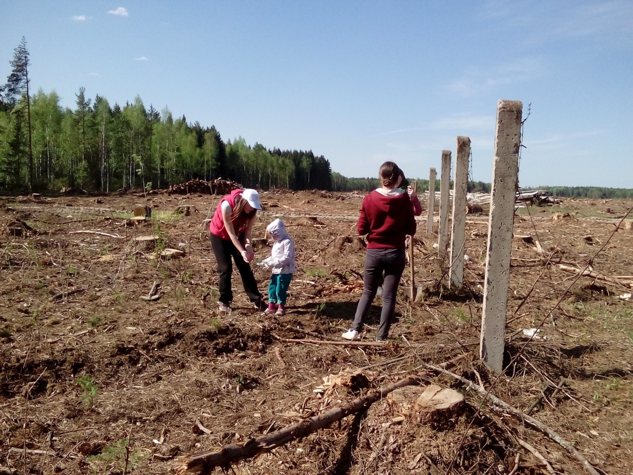 Жители принесли несколько сотен саженцев (ель, сосна, клен, дуб и другие деревья), лопаты, лейки и пр. Деревья стали высаживать по краю вырубки и углубляясь немного дальше от него и поливать.