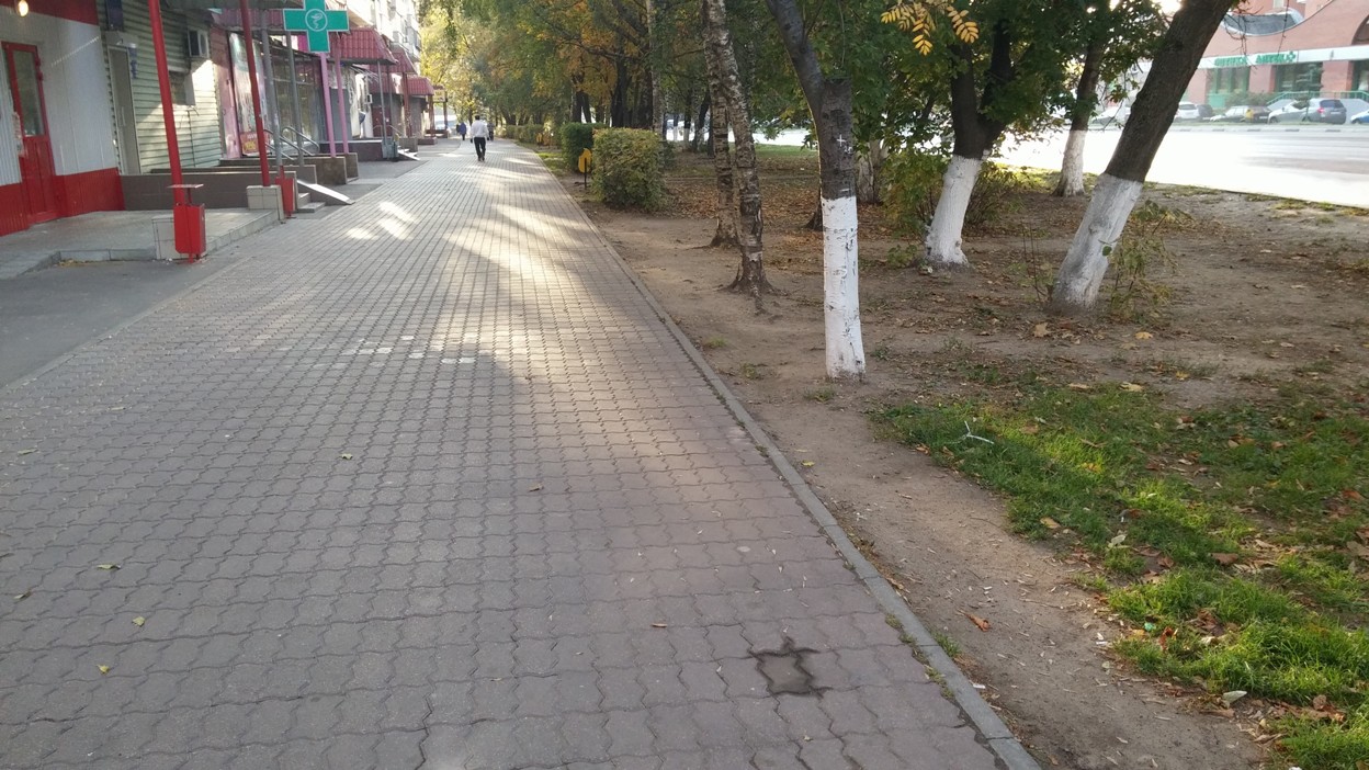 Территория вокруг нашего дома напоминает промзону. С фасада - нет ограждения у посадки деревьев. Всё вытоптано до состояния бетонной тверди.