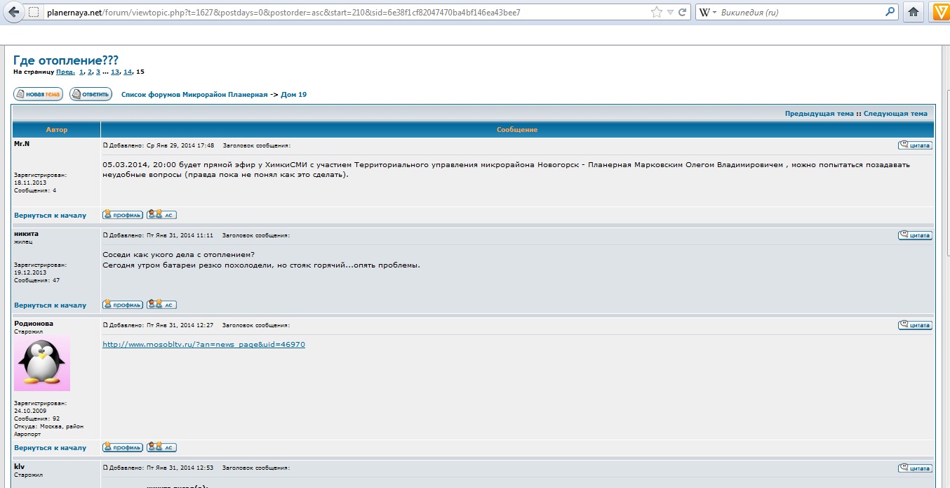 Начиная с осени прошлого года, когда начались проблемы с отоплением, жители описывают свои злоключения на местном форуме - набралось уже 15 страниц: