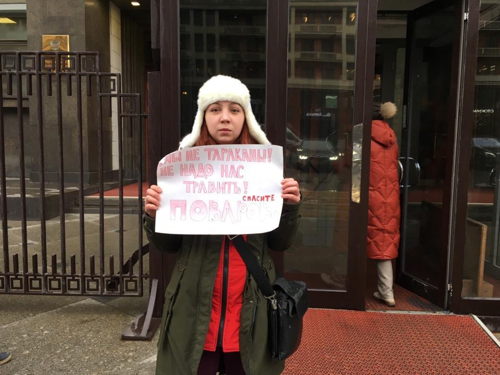 Граждане продолжают бессрочный протест против превращения Солнечногорска в помойку. 19 февраля в центре Москвы, у здания Госдумы, прошел очередной одиночный пикет жителей, требующих остановить строительство полигона в Поварово. "Мы не тараканы, не надо нас травить, спасите Поварово!" - с таким призывом обратились люди к народным избранникам.