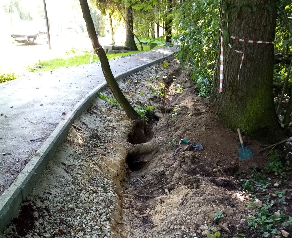 Однако в итоге с рабочими удалось договориться - они не стали рубить корни, а прокопали колею под ними и протянули по ней кабель.