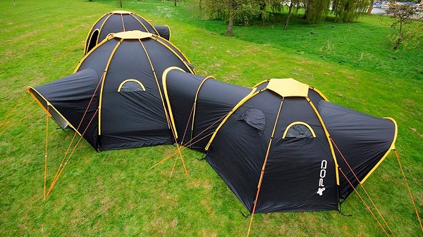 - Полушарие/полусфера. Идеальный вариант для непогоды. Эта геометрическая форма максимально выдерживает ветер, но чаще всего обладает не очень большой вместимостью. Это может быть двухместная туристическая палатка, максимум - 4-местная. Конструкция этой модели обычно оборудована предкомбинатом, что помогает лучше сохранять внутреннее тепло.