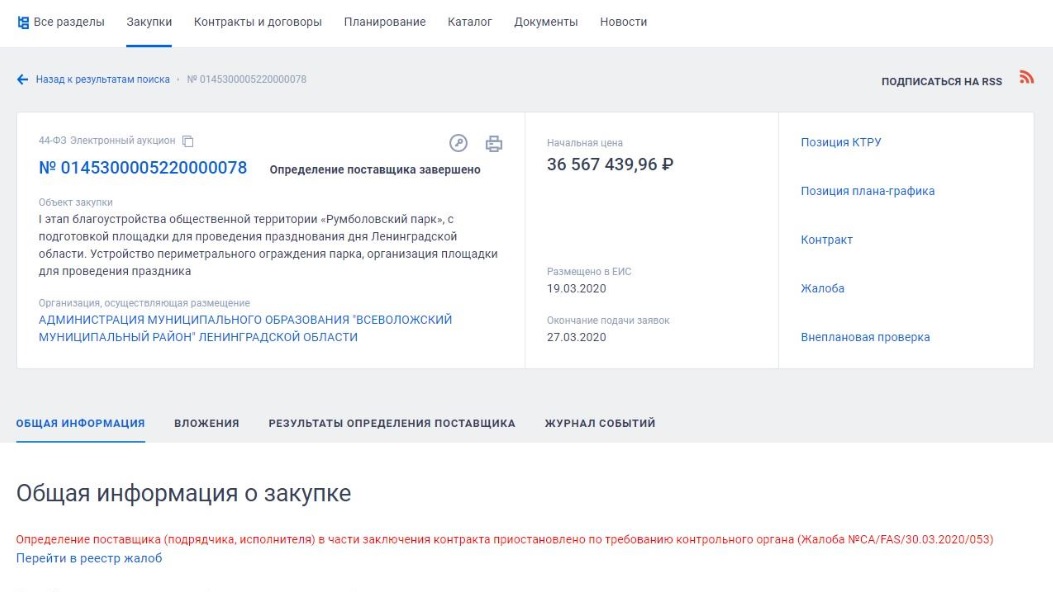Между тем на сайте госзакупок обустройство Румболовского парка по-прежнему значится как "приостановленная" по требованию контролирующих органов заявка.