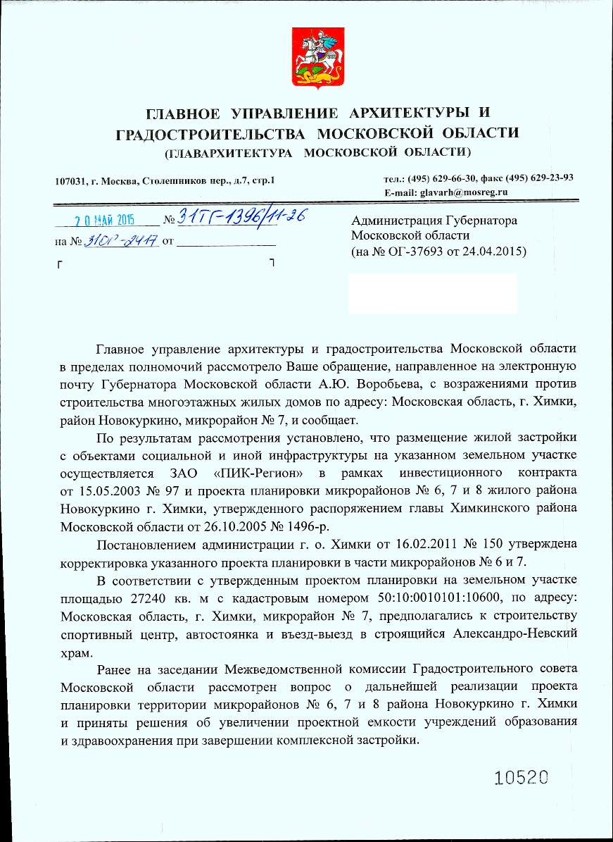 Жители Новокуркино получили письмо из Главархитектуры Московской области, где сообщается о выданных застройщику "ПИК-регион" еще в декабре 2014 года документах (ГПЗУ) на строительство пяти жилых домов.